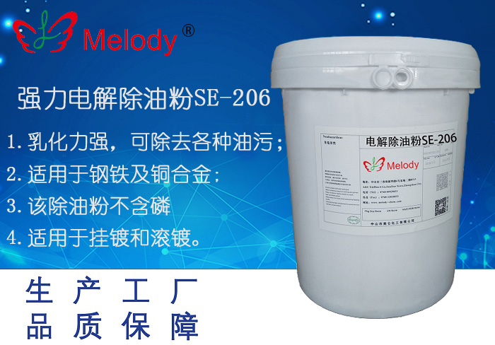 1. SE- 206 含有独特的表面活性剂系统,能在低温操作并维持高效能的电解除油粉。